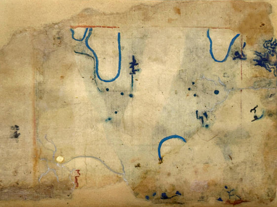 From a pirated version of his book, I screen shot these verso pages and print them, treating them as fragile terrains already shaped by time, moisture, and archival decay. From there, I intervene carefully—choosing what to trace, what to underline, what to leave untouched. Small gestures of color, line, and dot become acts of attention rather than illustration. The original cartography remains present but illegible, surfacing only as pressure, stain, and trace.